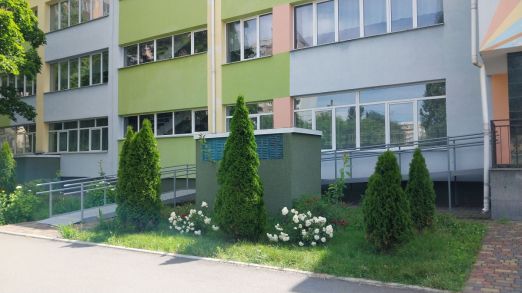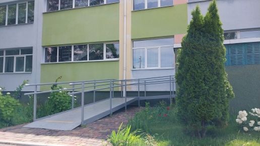 Вхід до ліцею розпочинається зі сходів, де встановлено пандус з поручнями.