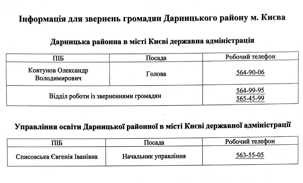 Інформація для звернень громадян